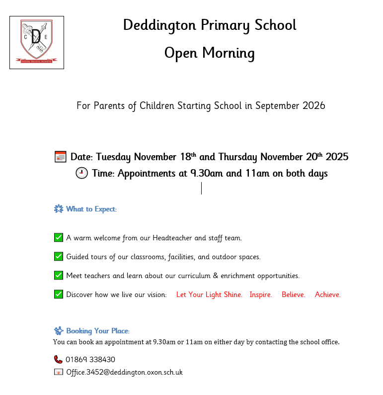 I am very pleased that you are considering our school for your child. It is such an important and sometimes difficult decision to make. The one thing I would advise, as the headteacher, is to ensure you get as much information as possible about the school's ethos and vision to help guide you through this process. Every school is unique, just like every individual child. We can show you what makes our school special.
